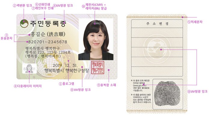 2020년 1월 1일부터 발급하고 있는 새로운 형태의 주민등록증은 임의 변조가 불가능하도록 다양한 기술을 추가해 보안을 크게 강화해 만져보고 기울여 보면 육안으로 쉽게 위·변조 여부를 확인할 수 있도록 했다.