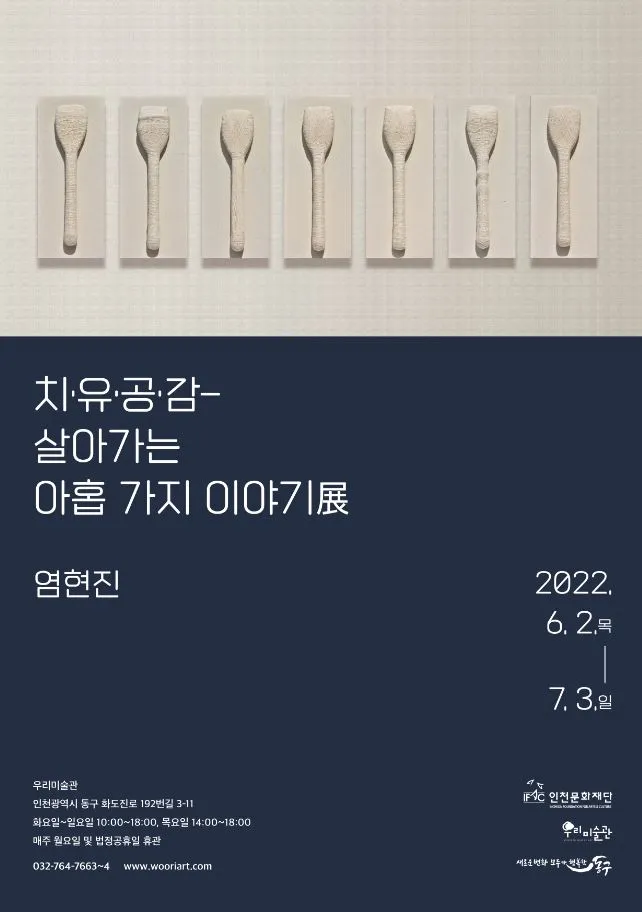 ○ 인천 동구청이 (재)인천문화재단에 위탁하여 운영 중인 우리미술관에서 전시가 열린다. 바로 인천 예술인 염현진 작가가 참여하는 <치•유•공•감-살아가는 아홉 가지 이야기>展이다. 본 전시는 6월 2일(목)부터 7월 3(일)까지 우리미술관에서 진행되며, 작가의 평면 및 설치 작품 12여점을 만날 수 있다.