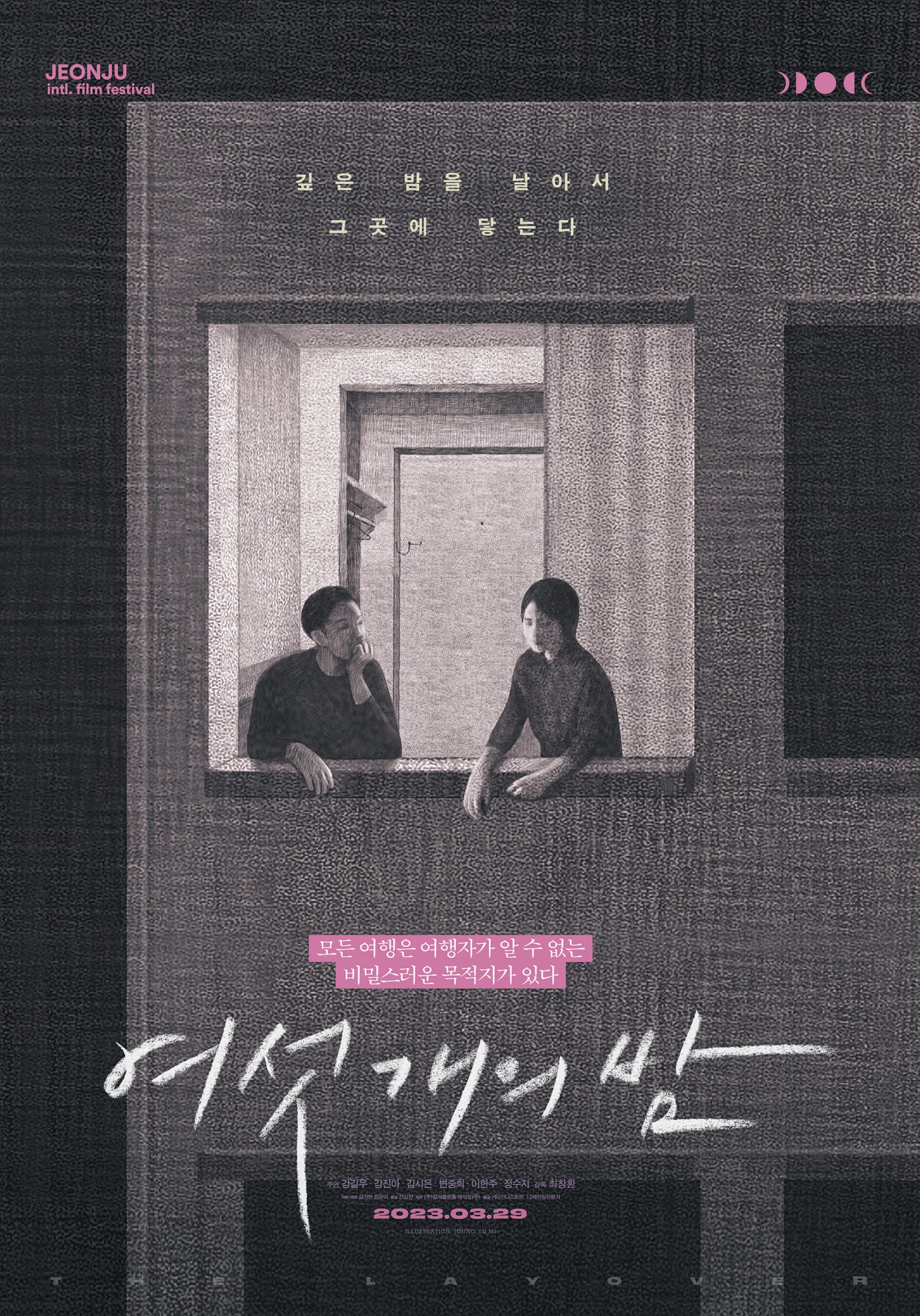 □ 여행 중 뜻밖의 목적지에 불시착한 여섯 인물의 비밀스러운 하룻밤 이야기를 다룬 작품. 지난해 제 23회 전주국제영화제 코리안 시네마 부문에 상영되어 주목받았고, 강길우, 강진아, 김시은, 변중희, 이한주, 정수지 등 K무비 넥스트 액터스로 회자되는 독립영화 대표 배우 6인의 멀티캐스팅이 눈길을 끄는 작품이다.