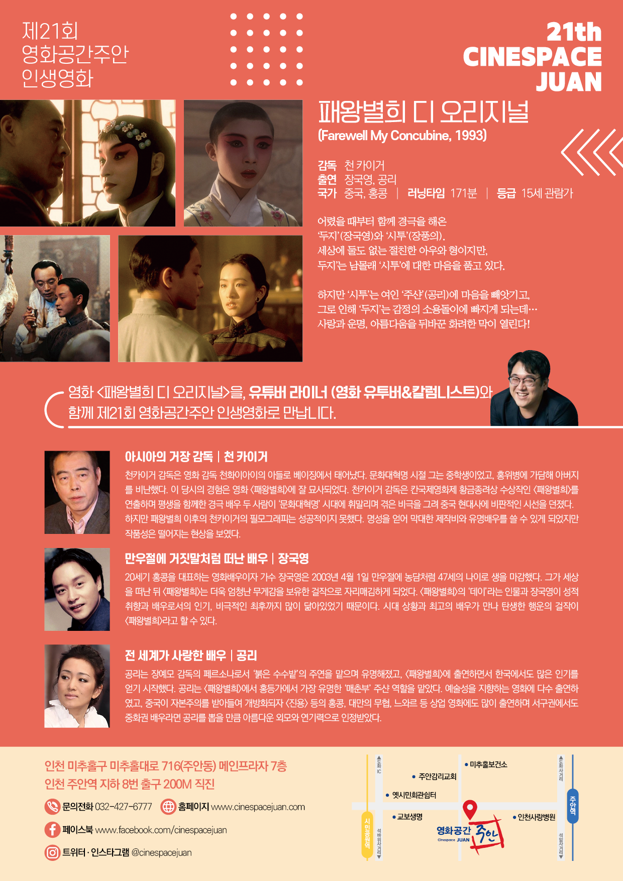 「 그 시절 우리가 좋아했던 장국영을 추억하며.. 영화공간주안 제21회 인생영화 , ‘패왕별희 디 오리지널’」