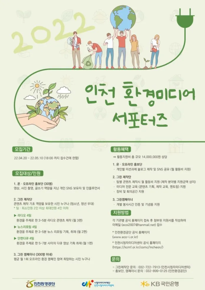 – 인천환경공단 ↔ 인천시청자미디어센터 ↔ KB국민은행 경인지역그룹 3개 기관 공동으로 2022 인천환경미디어서포터즈 운영 –