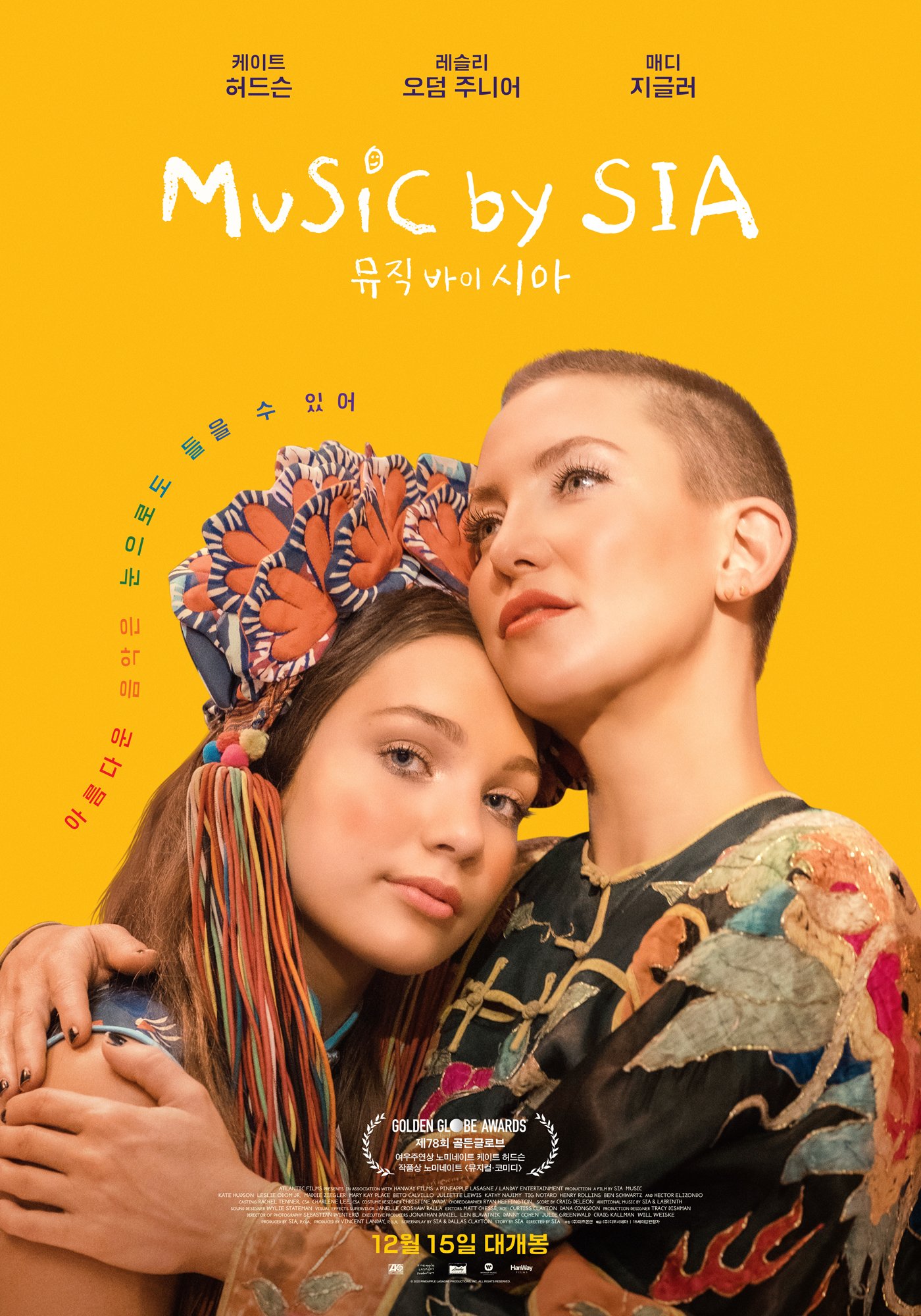 □ <뮤직 바이 시아>는 전 세계가 주목하는 팝 아티스트 시아가 각본, 감독, OST에 참여한 올 겨울 기대작이다. 시아의 개성이 가득 담긴 10곡의 OST가 삽입됐으며, 지금까지 시아의 노래를 귀로만 들었던 팬들에게 뮤지컬 형식을 통해 영화 속 등장인물들의 화려한 퍼포먼스로 시각적 체험을 전달함으로써 관객들을 모을 수 있을 것으로 예상된다.