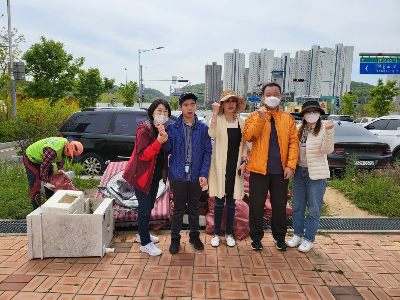 푸른 생명의 계절 5월의 첫 주에 인천중구관광협의회와 하늘지킴이가 골든테라시티 예단포항 옆 공원에서 클린관광 환경정화 활동을 하였다.