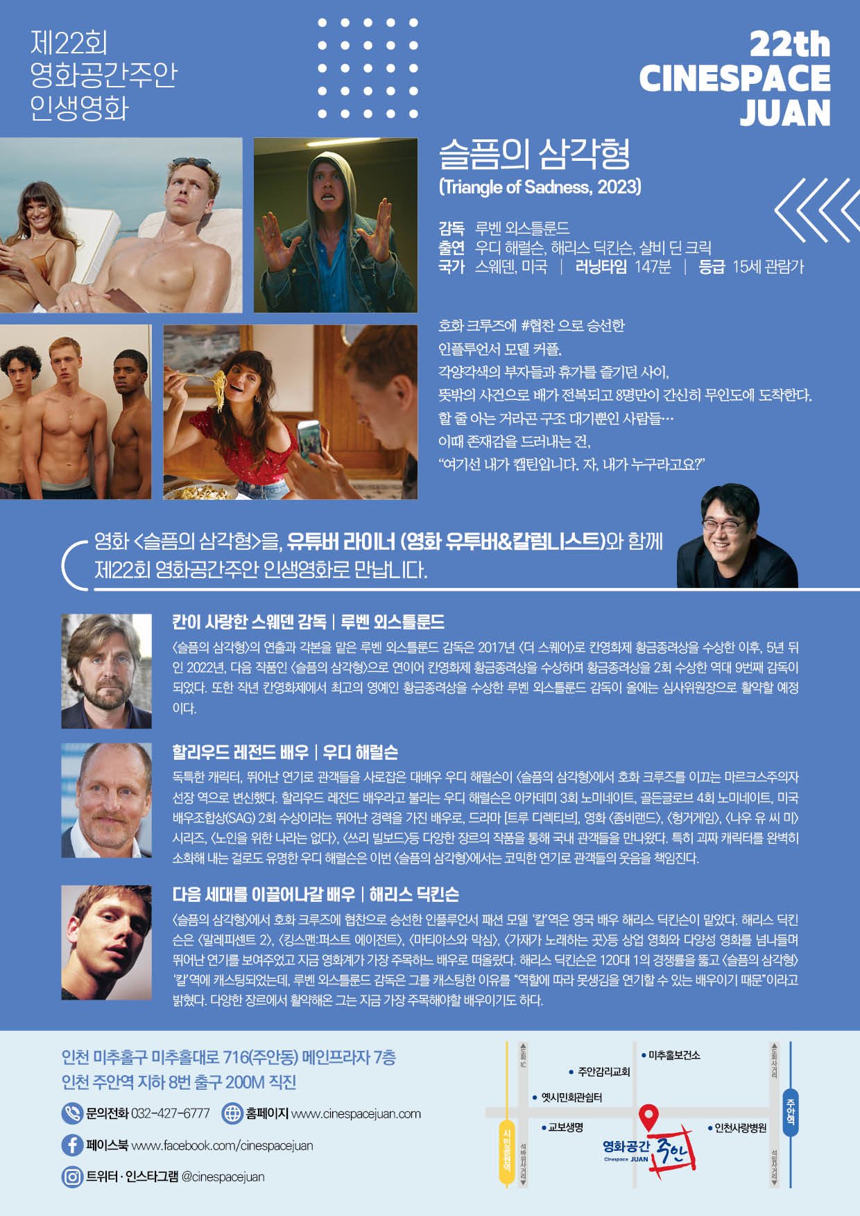 「 영화공간주안 제22회 인생영화 제75회 칸영화제 황금종려상 수상작, ‘슬픔의 삼각형’」