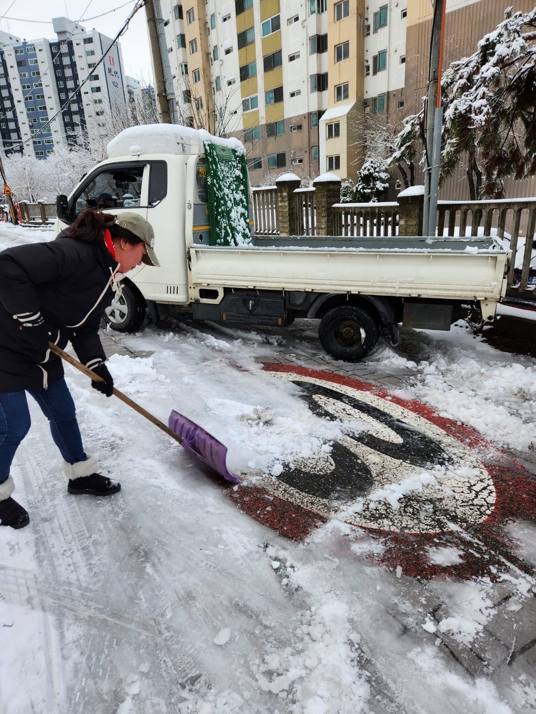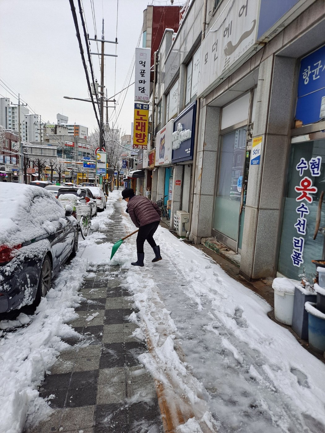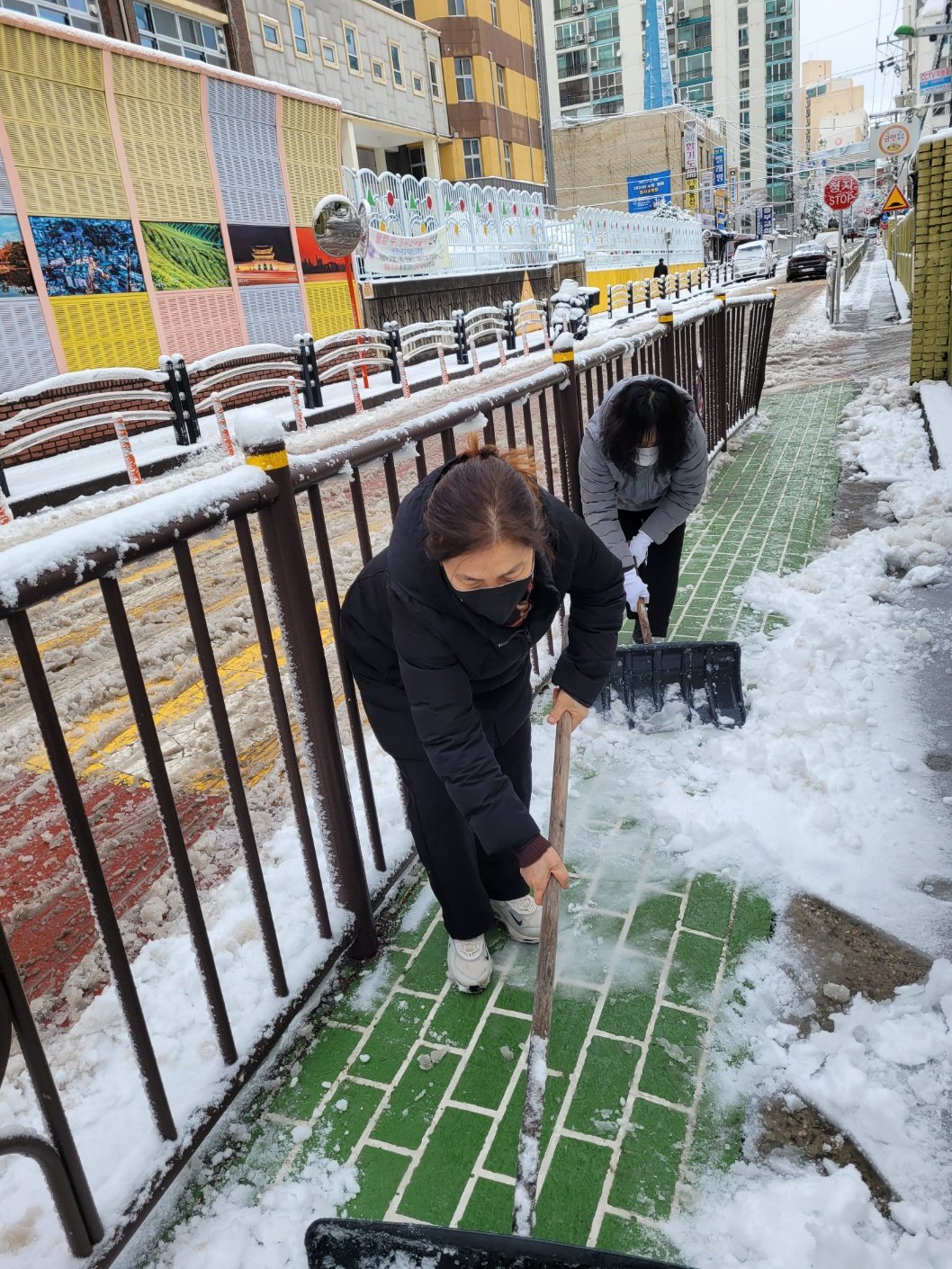 계양구 작전1동 행정복지센터(이경숙 동장) 소속 통장님들이 21일 밤사이 많은 눈이 내린 관내 골목길을 손수 제설작업을 하고 있다.