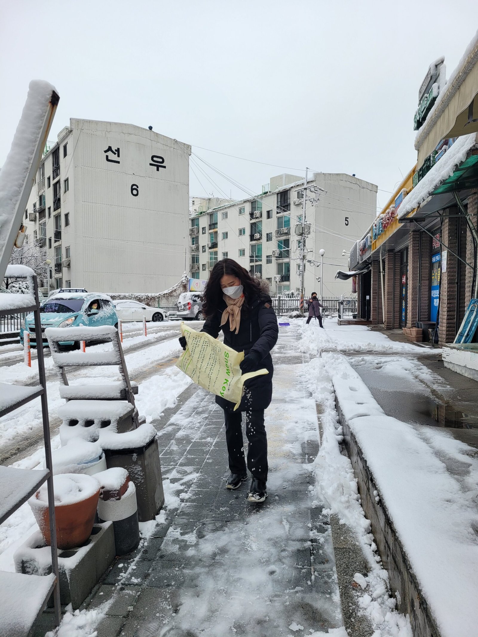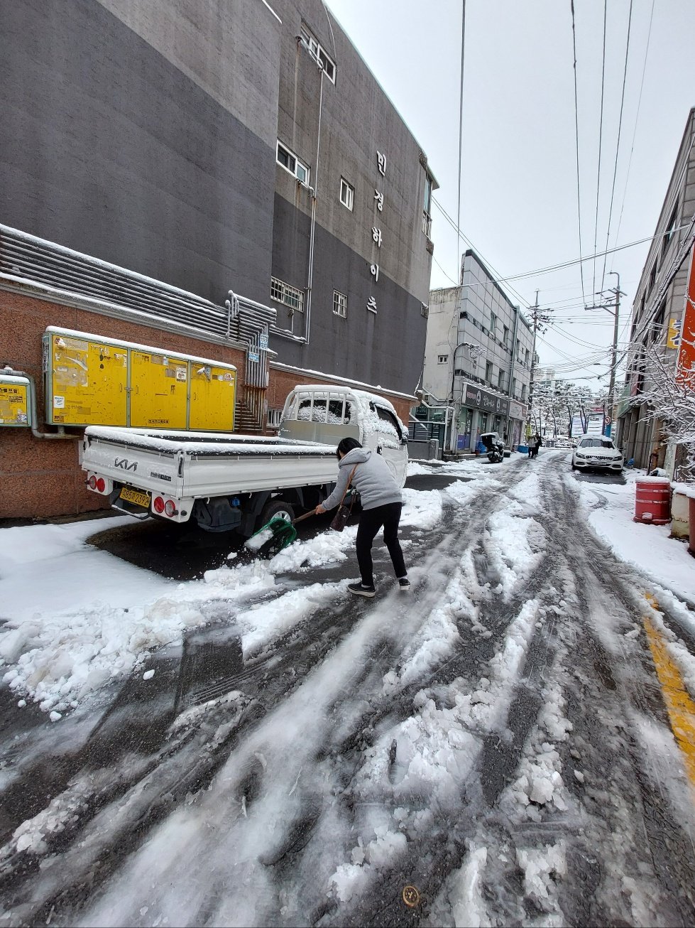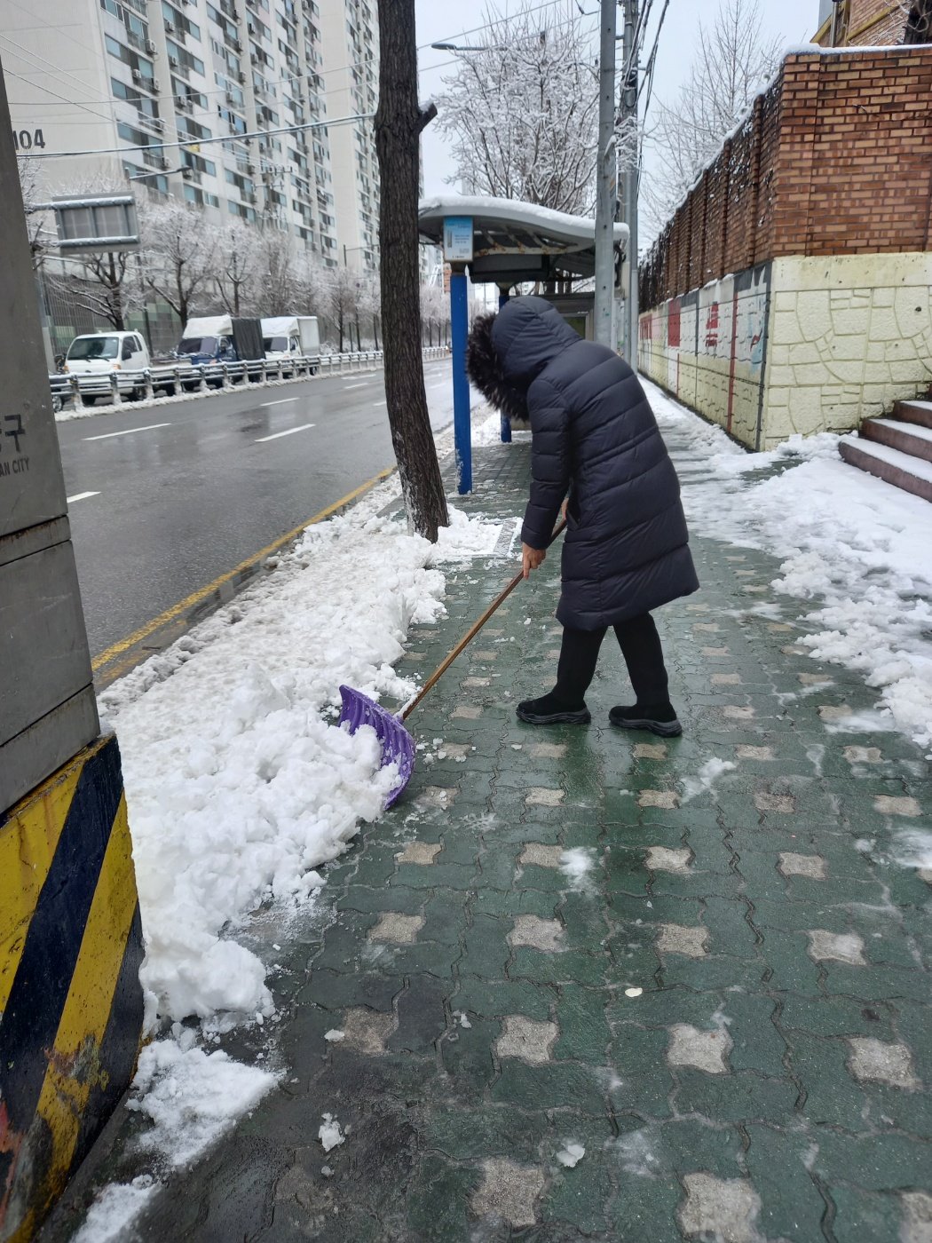 계양구 작전1동 행정복지센터(이경숙 동장) 소속 통장님들이 21일 밤사이 많은 눈이 내린 관내 골목길을 손수 제설작업을 하고 있다.