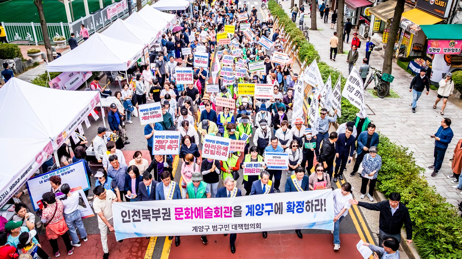 계양구민들은 문화예술회관 유치를 염원하며 범구민 대책협의회 주도 아래 ‘인천시는 북부권 문화예술회관 계양구에 건립하라’라는 구호를 외치는 한편, 현수막과 피켓을 들고 거리를 행진하며 결의를 다졌다.
