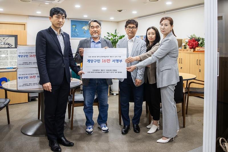 구민을 대표한 민종상 범구민 대책협의회장(현 계양구 주민자치협의회장) 등 구민 7명은 이날 시청을 방문해 계양구민의 염원이 담긴 16만명 서명부를 전달했다.